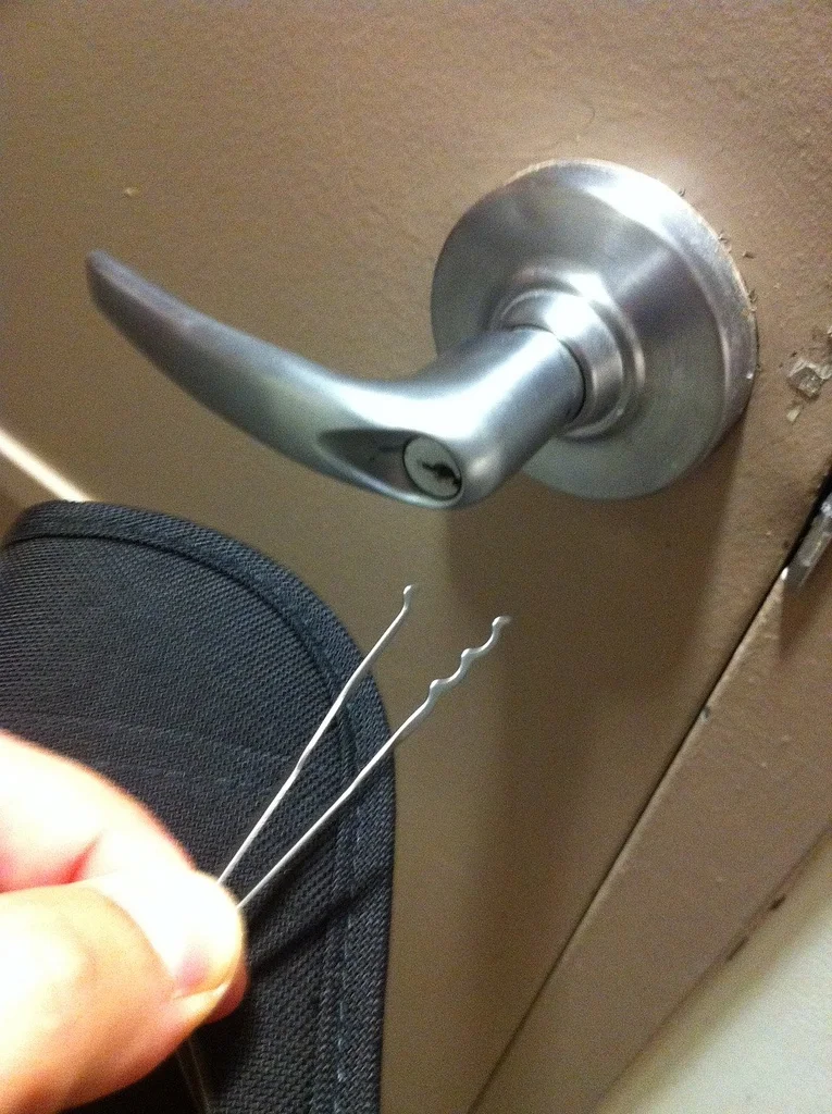 I pull out my trusty SERE Bogota Lock Pick and had the lock open in no time.