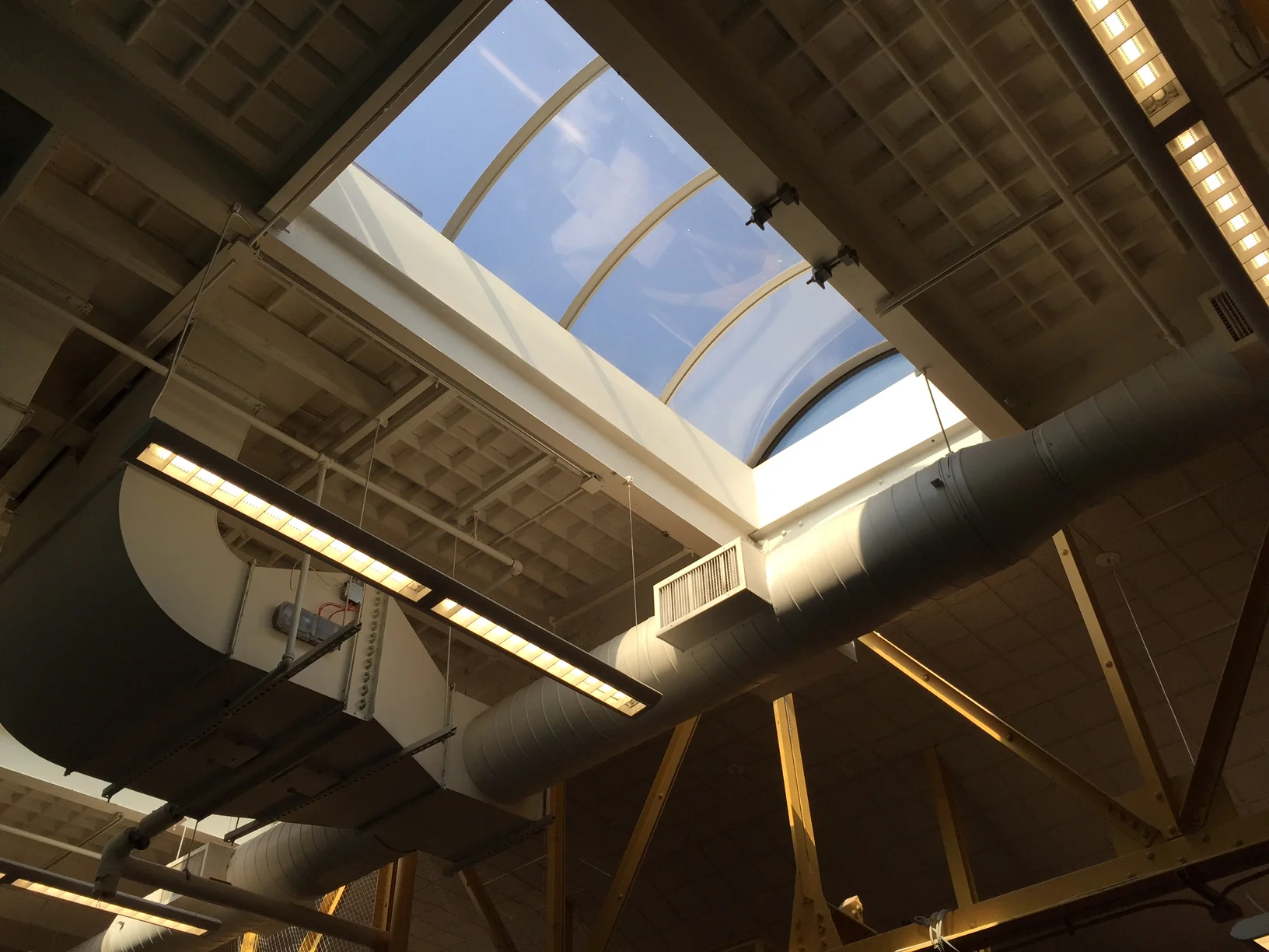 Surprisingly the door to the roof had a simple lock, so after picking it we were out in the roof. Trying to remain low, this was the middle of the day, we reached the big skylight, a dome-like window that opened by sliding half of it. After cutting the padlock, we waited for a few minutes to see if anyone was around (we had a good view of the floor, except for the far north corner. But we were willing to take the risk.