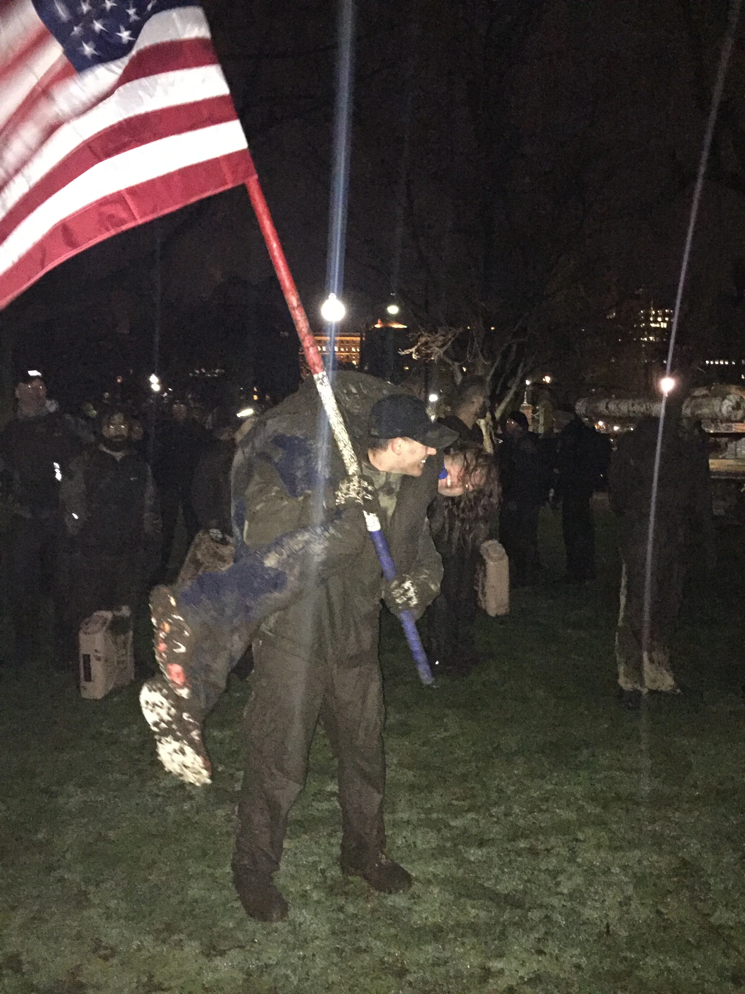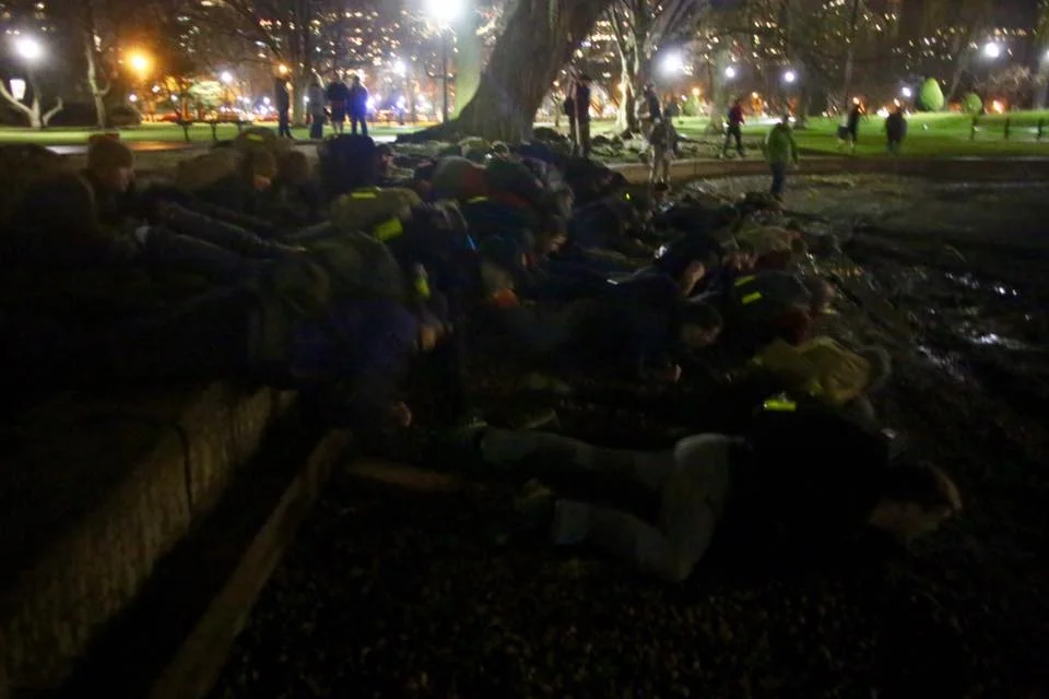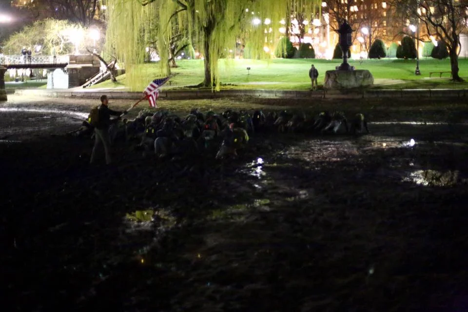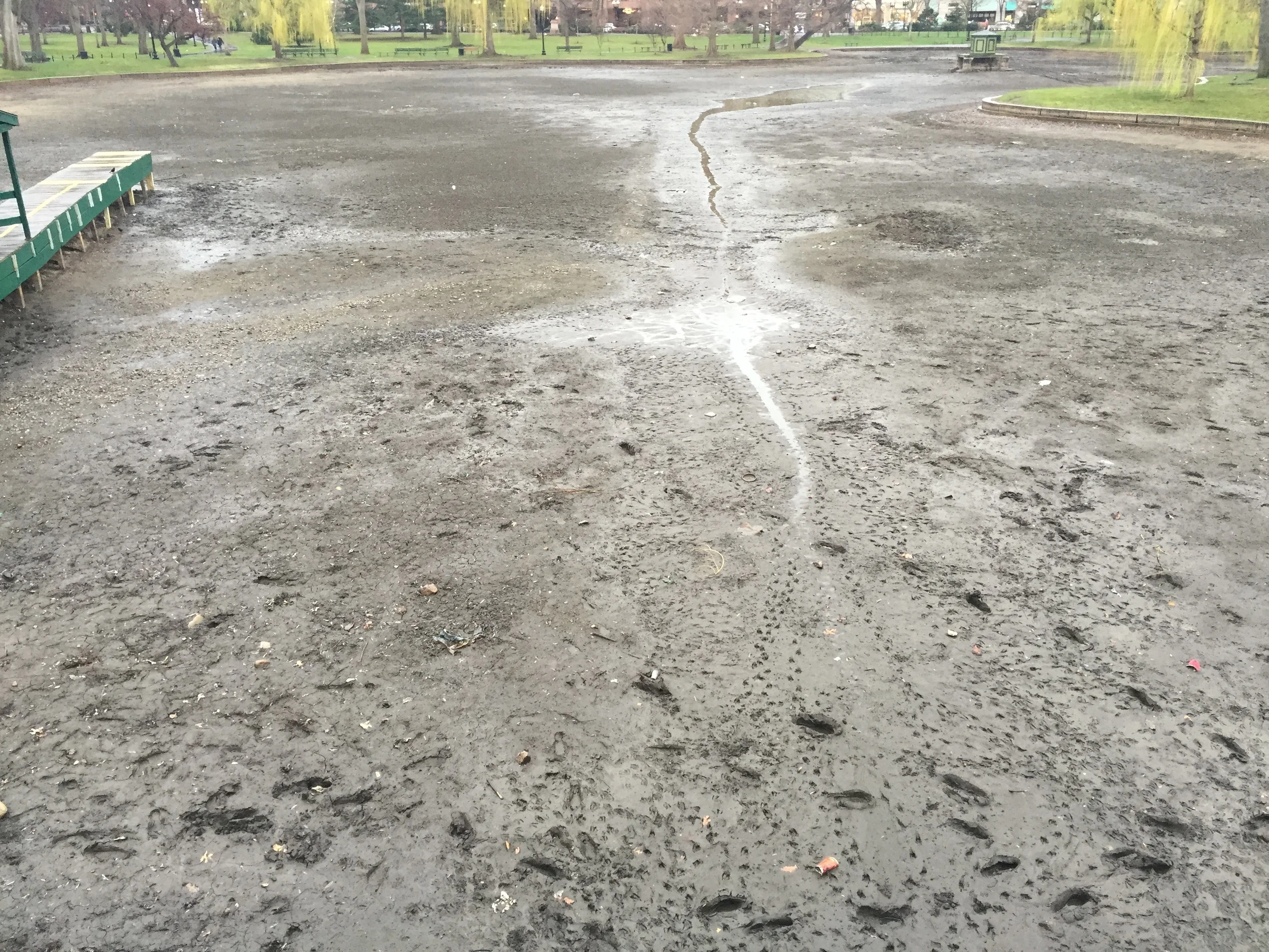 And into the duck pond in the Commons. No ducks, no water... Just mud and tons of shit.