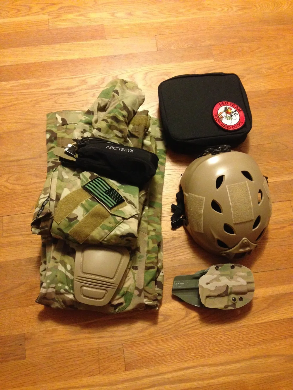 Since I don't need ballistic protection on this one (I hope), the vest and ops-core ballictic helmet stay behind. I only bring the bump helmet, we'll be riding on and off helos and fastroping into places, so a good protection for the heal is critical.