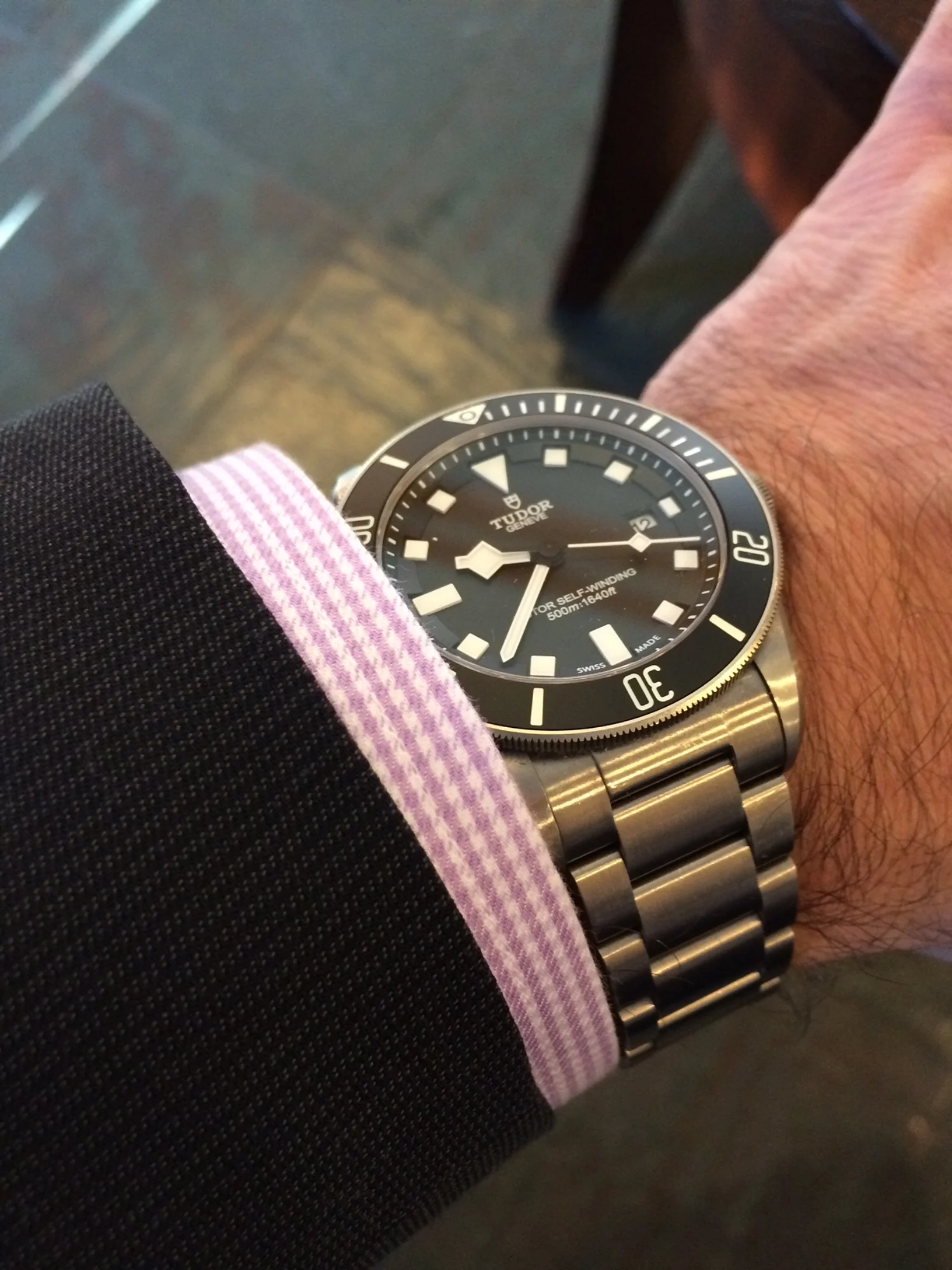 SW asked: I saw you own a Tudor Pelagos. Isn't it too bulky to wear with a suit or dress shirt? Answer: Judge for yourself. View fullsize I love this watch.