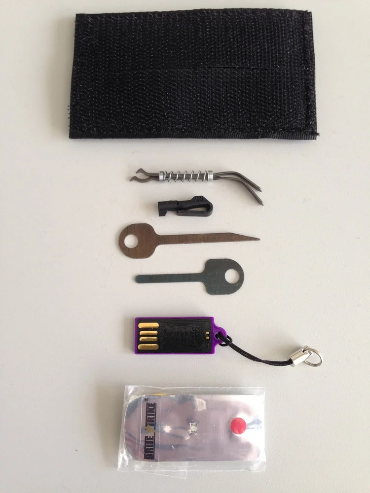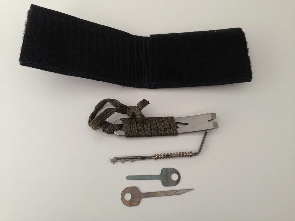 This is not a SERE or survival kit. This will not really help you if you get caught (remember Rule 5), but in you are hiding, trying to blend in and you need to break into a location to find a computer and send a distress signal, this can help. We built this after some painful lessons learned.